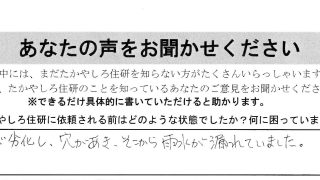 たかやしろ住研に依頼される前にどんなことで悩んでいましたか?