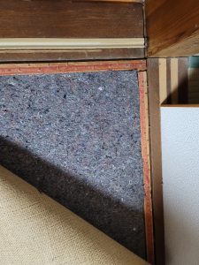 ジュータンの下には、フェルトが敷いてあり、ジュータンの端には木にジュータンがめくり上がらないように爪が打込まれたモノがありました。