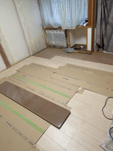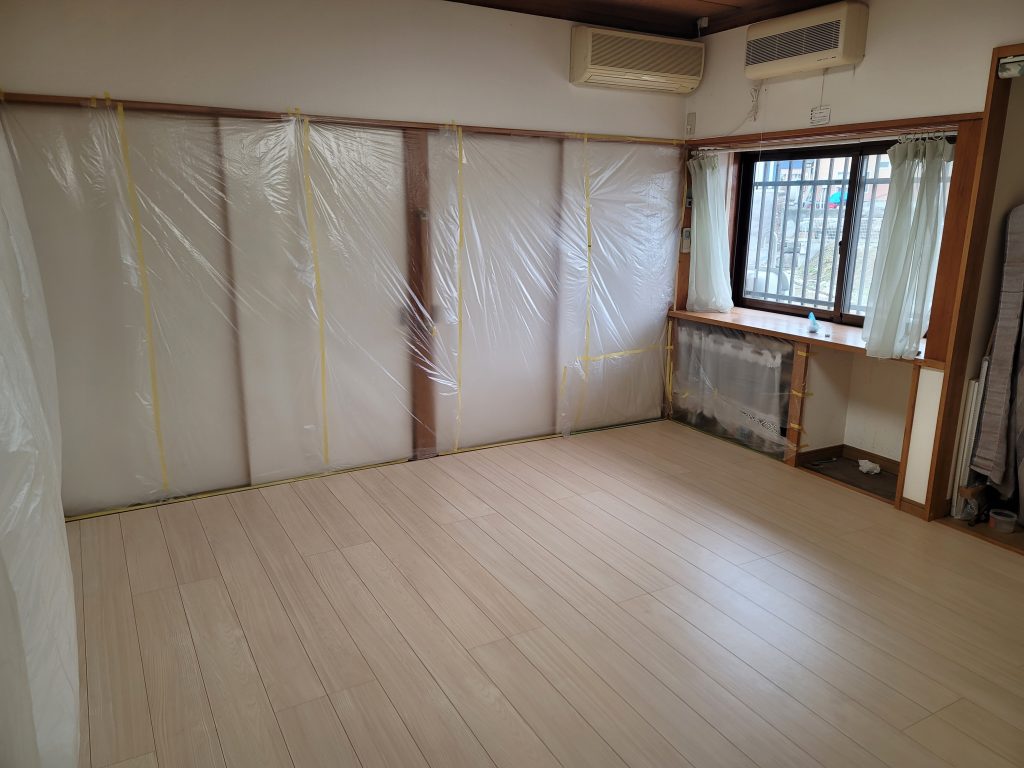リフォーム用床材の張替え終了です。北面しか窓がないので床材を明るい色にさせてもらいました。