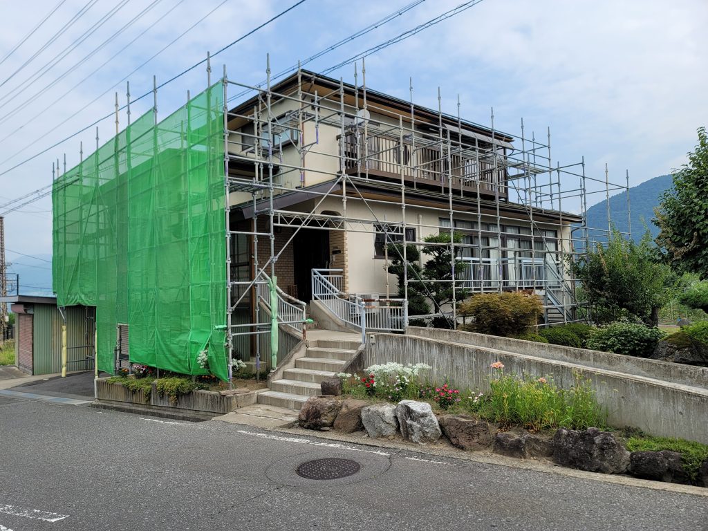 仮設足場設置。まずは、温水パネルの撤去から始めます。