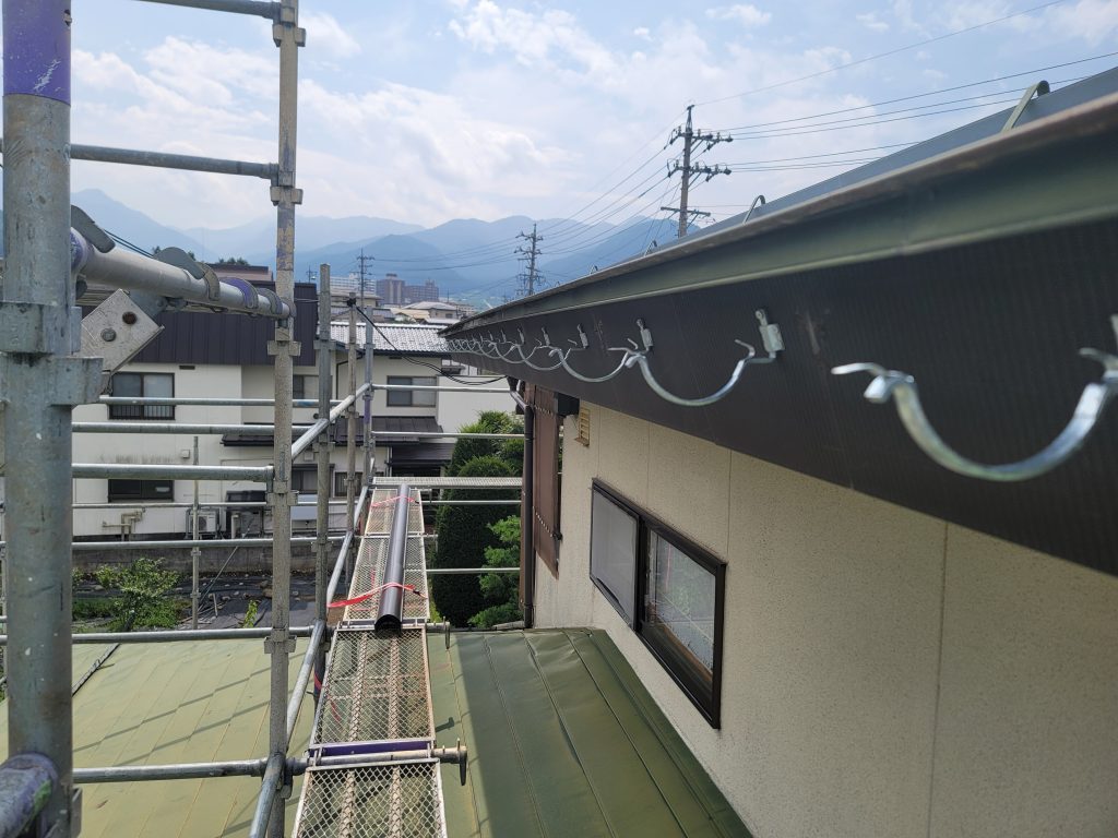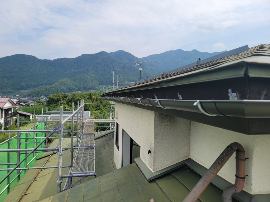 今回施工の全景写真です。雨樋の穴や温水パネルの細かい部分は見えませんが、雨樋のたるみは良く見るとわかるかもしれませんね。