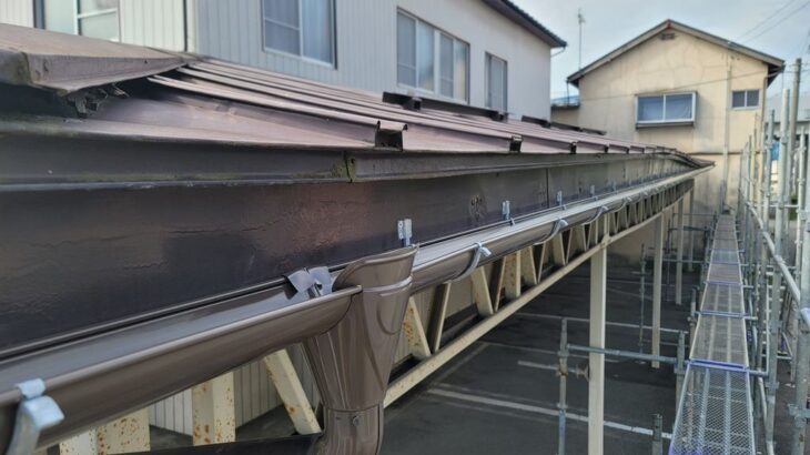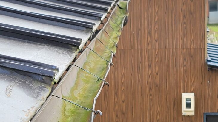 工事前写真 工事前01:【北面雨樋】 屋根が波を打っていて、雨樋の水勾配が上手く…