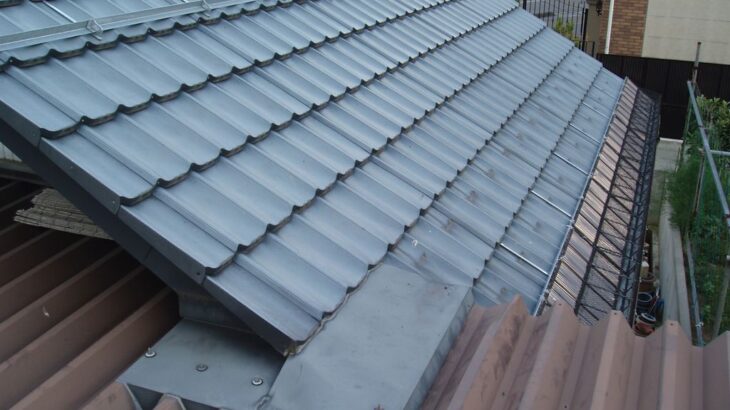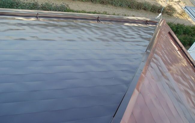 工事前写真 工事前01:屋根と雨樋の状態 雨樋の端部がサビ始めています。雨樋の途…