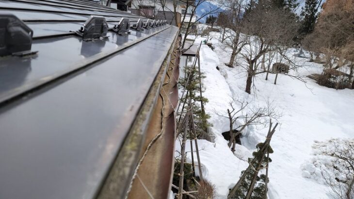 工事前写真 工事前01:【2階雨樋】 雪の影響で雨樋が垂れ、雨水が溜まっている。…
