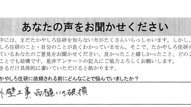 工事前写真 工事前01:外壁の状態 この外壁材は釘打ち施工になっていますが、とこ…