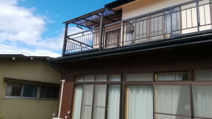 工事前写真 工事前01:ベランダ 屋根を設置するのに手すりや壁際に配線BOXなど…