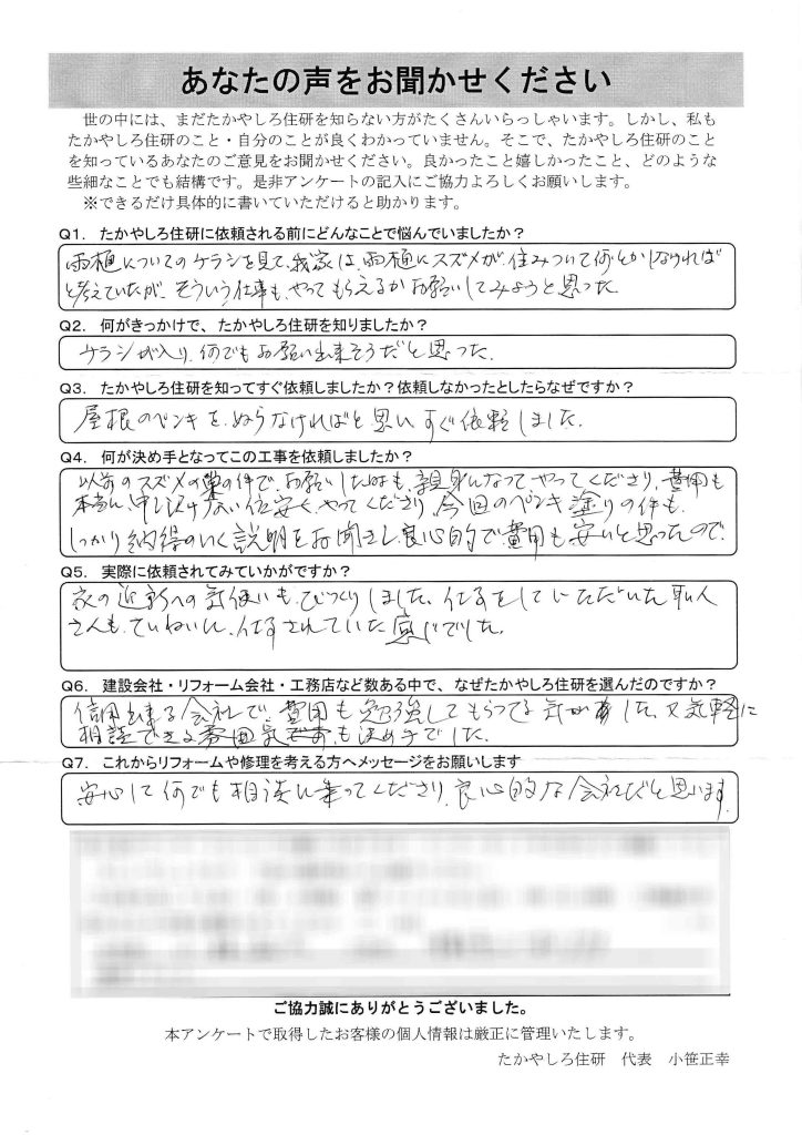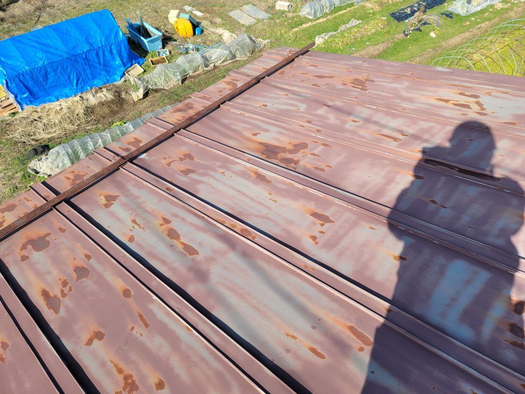 昭和54年に倉庫を建ててからしばらくして一時期実家を出ていました。その間は父親が管理していたので屋根を塗り替えたのかどうかわかりません。でも、平成15年に戻ってきてから倉庫の屋根の塗り替えをしていなくて、数年前から塗り替えをしなくちゃいけないと考えていた。