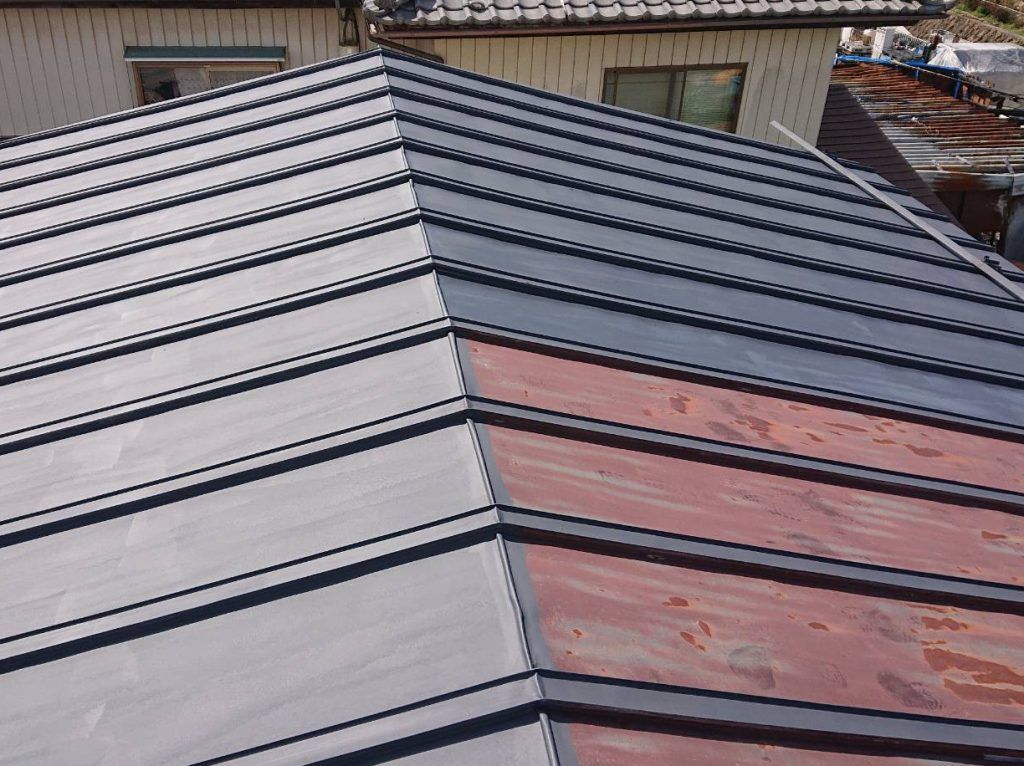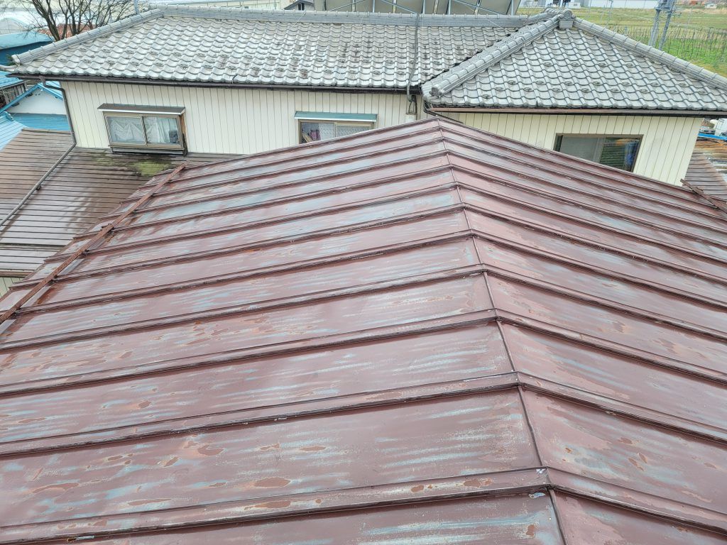 1階の屋根は2階同様ですがアングルはまだそこまでサビていません。