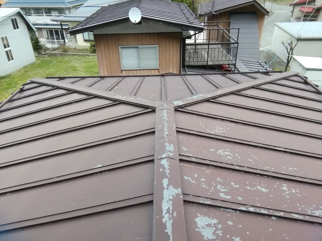 前回の施工方法が分からないので何とも言えませんが屋根材の素地が表れています。
