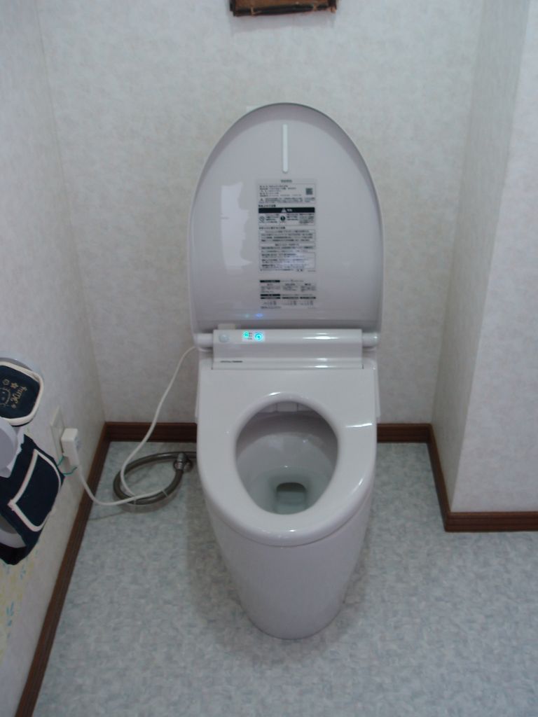 クライアントからセンサーで便座や便フタが開閉するタイプの要望があったので、TOTOのネオレストRHを取り付けることにしました。その時に便器横の存在感のある給水管をなくしました。