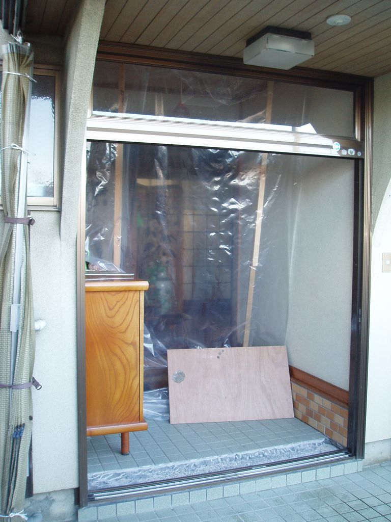 以前、玄関の引違い戸の建付けが悪くなってきたので、建具を調整してもらっいました。しかし、それから3年半が経ち、状態がもっとひどくなってしまいました。もともと地盤が弱いところで、前面の道路が比較的通りが激しく、大型トラックが頻繁に往来することもあり、とうとう引違い戸を閉めても傾斜の関係で開いてしまうようになってしまいました。