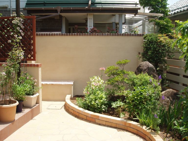 庭の芝の手入れが大変になって、その部分をレンガ等で