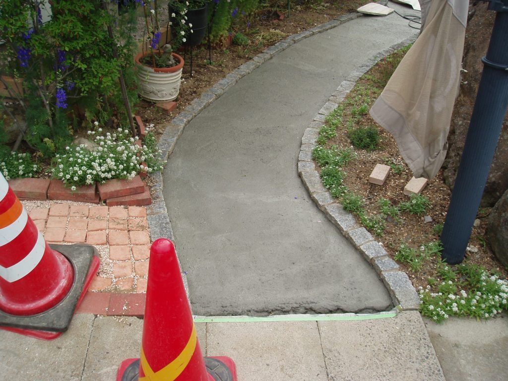 既存のレンガを撤去して、アプローチが凹まないようにベースになるコンクリートを打ちます。