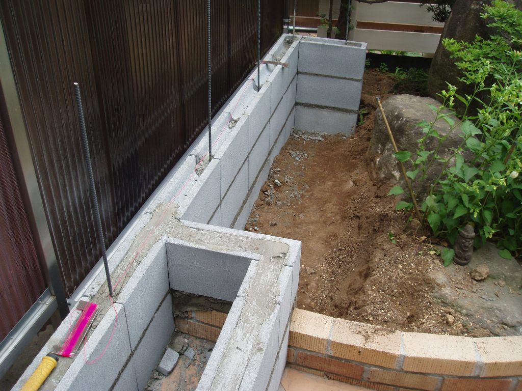 ブロックを背丈まで積むのでベースになる基礎部分をキチンと施工しておかないといけません。