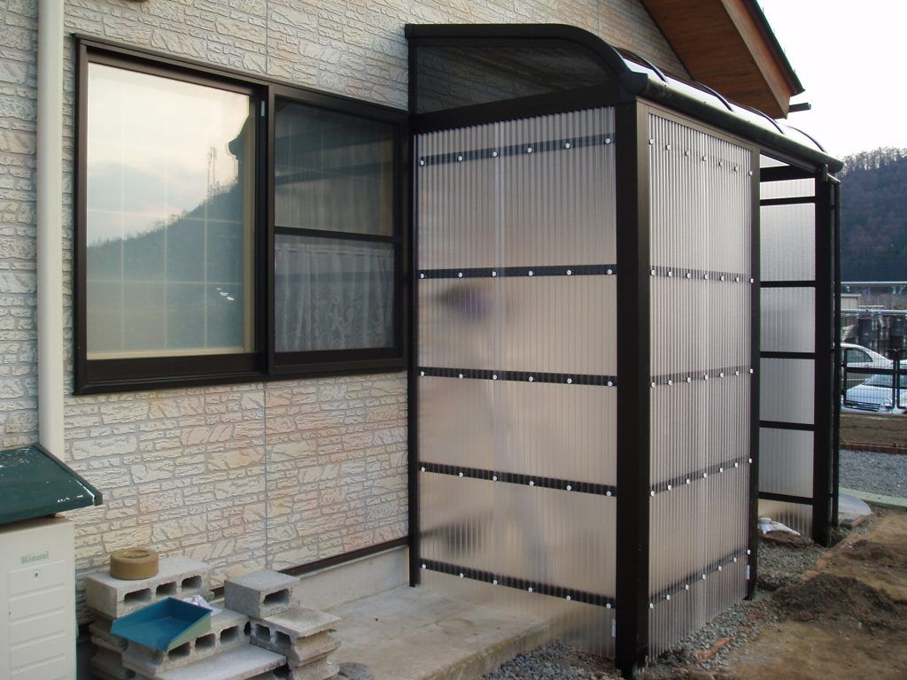 このストックヤードの用途は、おばあちゃんのスペースです。外の洗濯機や畑道具やお友達が来たときのちょっとした休憩場所です。12月に久しぶりにお会いしましたが、大変喜んでいらっしゃいました。重宝しているそうです。