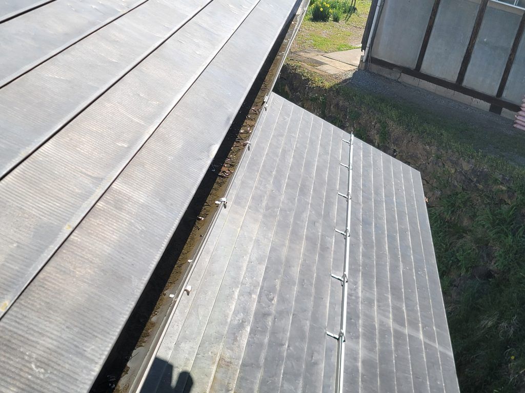 案の定、屋根が水平ではなく元の左側に水勾配が取れないのでお客様と打合せをして右側に変更して取付けます。