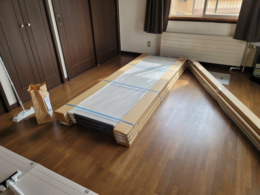 作製した可動間仕切が届いたので、これで取付作業です。
