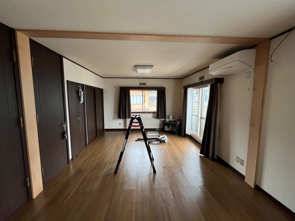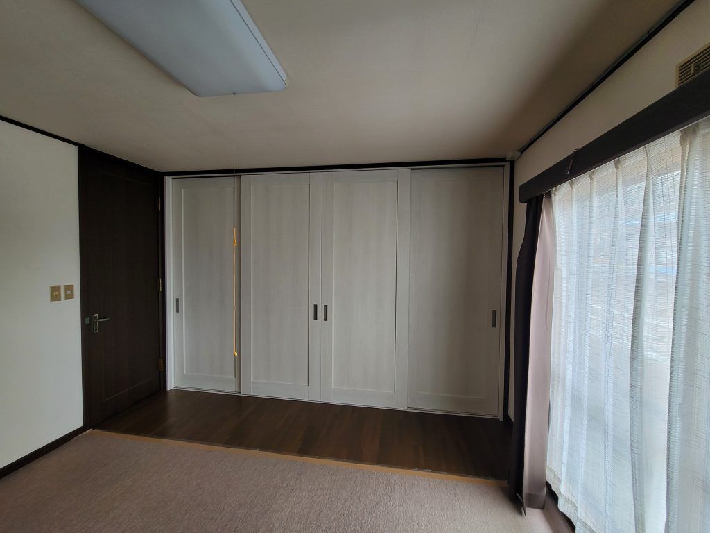 その間に設置した木枠の見える部分を既存建具と同色で塗装をしました。