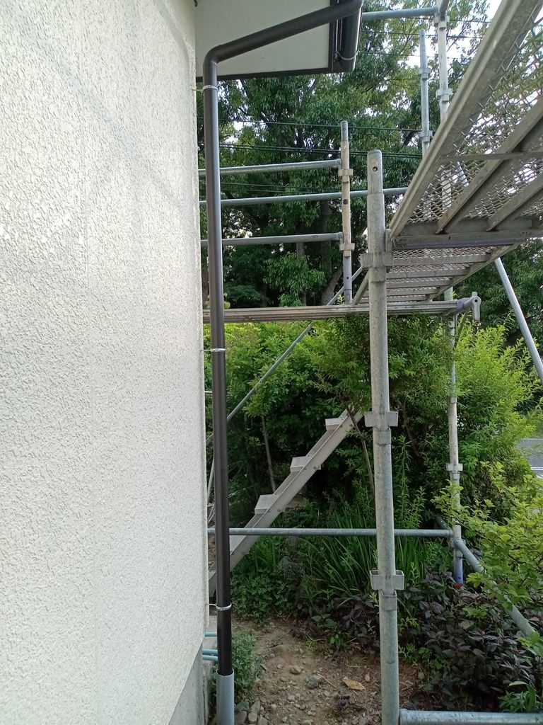 脚立足場で対応できるところは除いて、住宅の西面に仮設足場を設置させてもらいました。