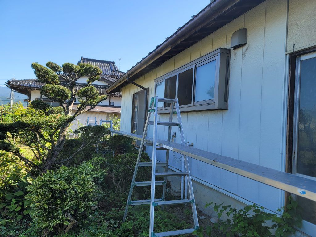 今回は、仮設足場ではなく、すべて脚立足場で対応が可能だったので、そのようにしました