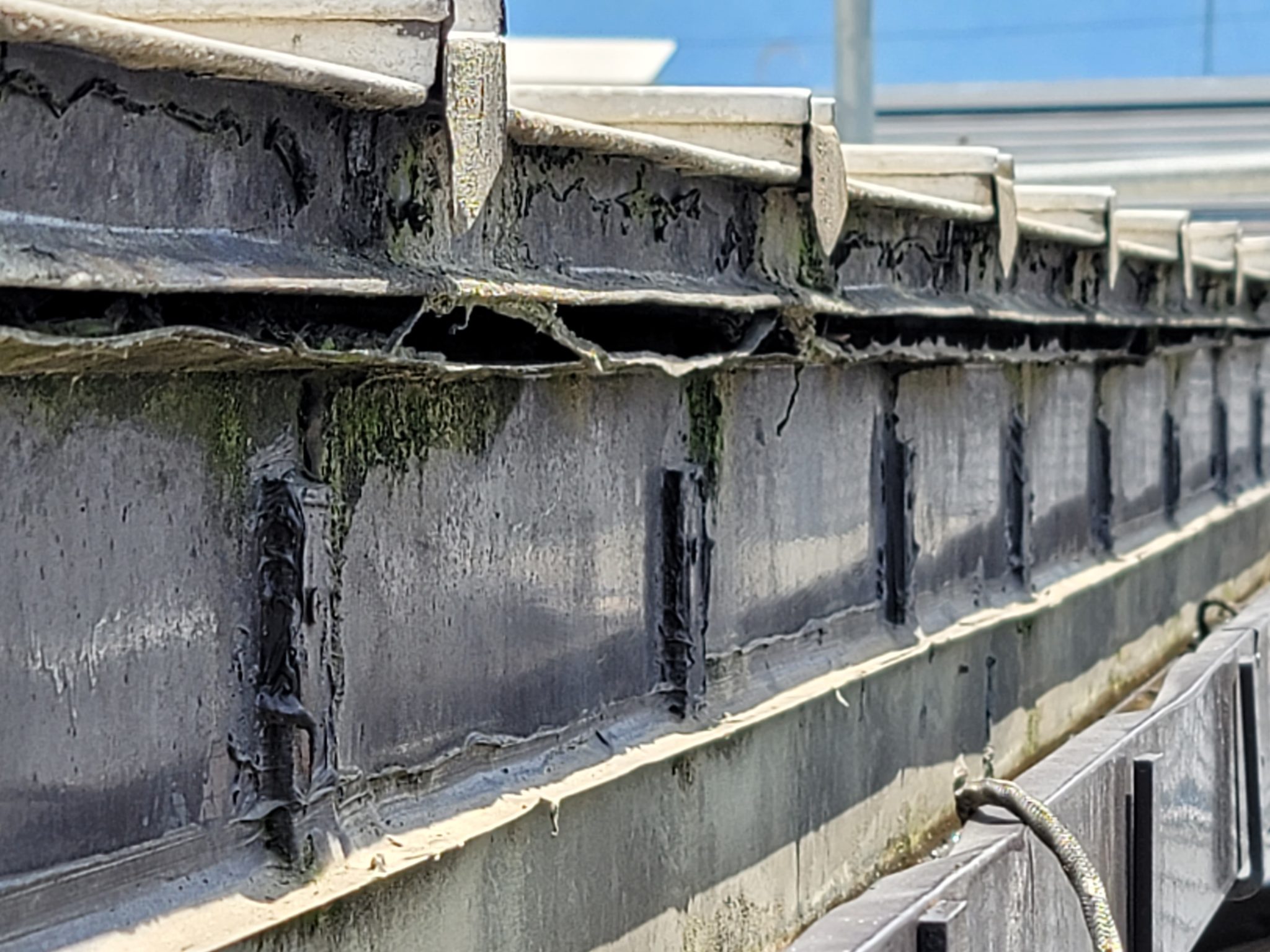 以前から3階の雨樋から雨水がポタポタと落ちていた。2年前に屋根と外壁塗装工事をした時に業者(塗装屋)に雨樋のコーキングをしてもらった。しかし、最近になってまた雨水がポタポタと落ちてくるようになって来たので何とかして欲しい。