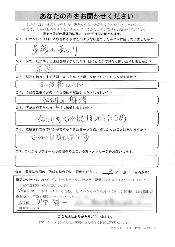 雨もりをなおしてほしかったため。