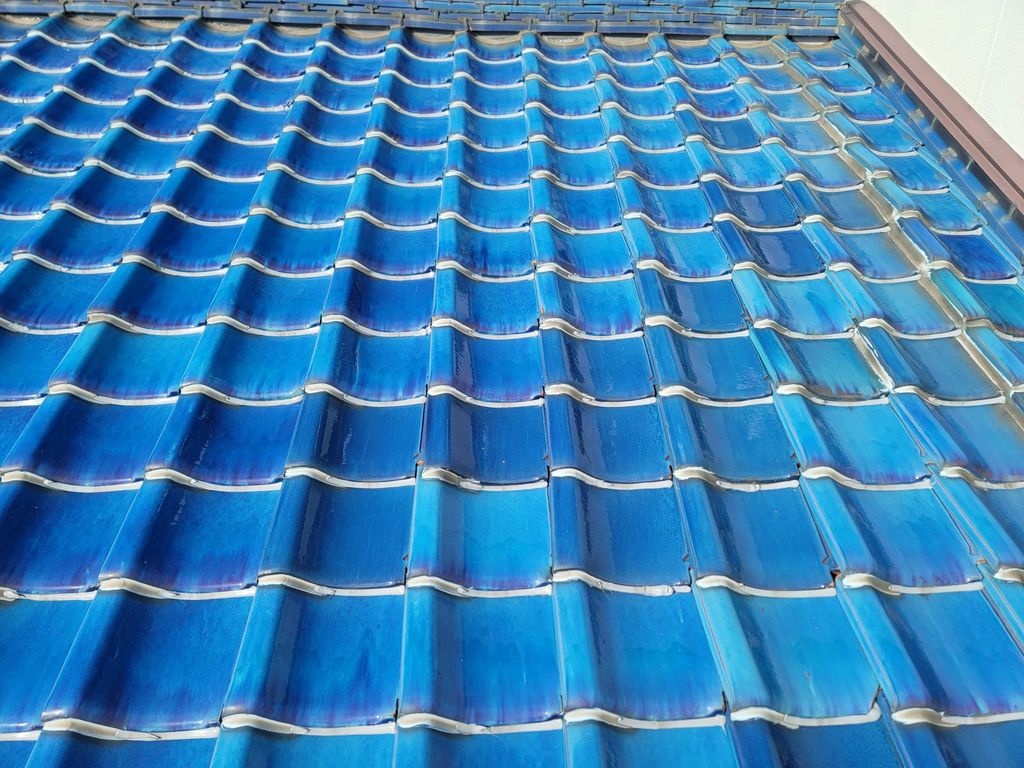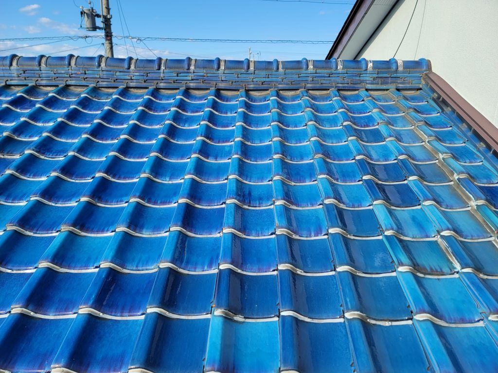 信じられないことに瓦にコーキング処理をしてありました。それも瓦下の部分にです。それが雨漏りの原因の1つだと考えられます。ただし、雨の侵入経路は残念ながら特定はできませんでした。(正直なところ特定は難しい!)北面も同じような事になっていますが、今のところ雨漏りはしていない様子。瓦下端のコーキング切り・一部瓦葺き替え・全面葺き替えを提案し、全面葺き替えを選んでいただきました。