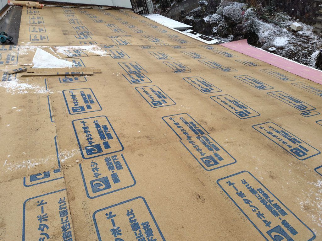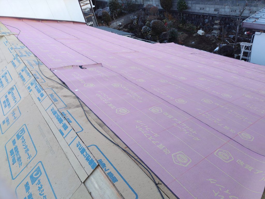 その上にルーフィングを敷いて防水性をプラス。