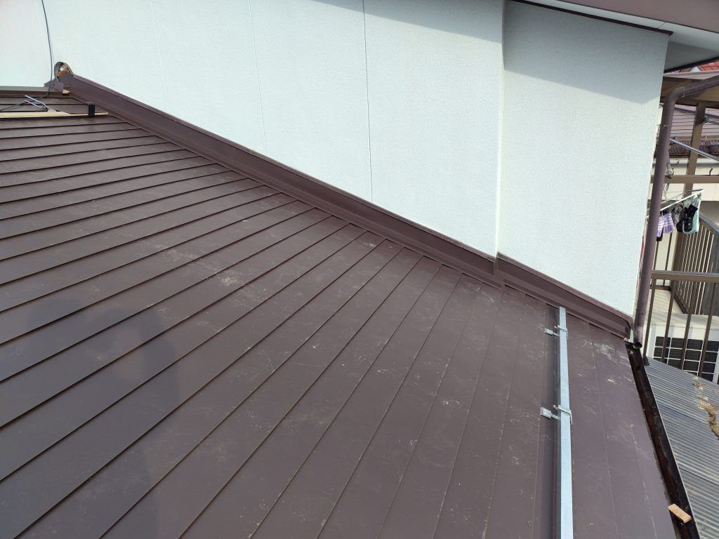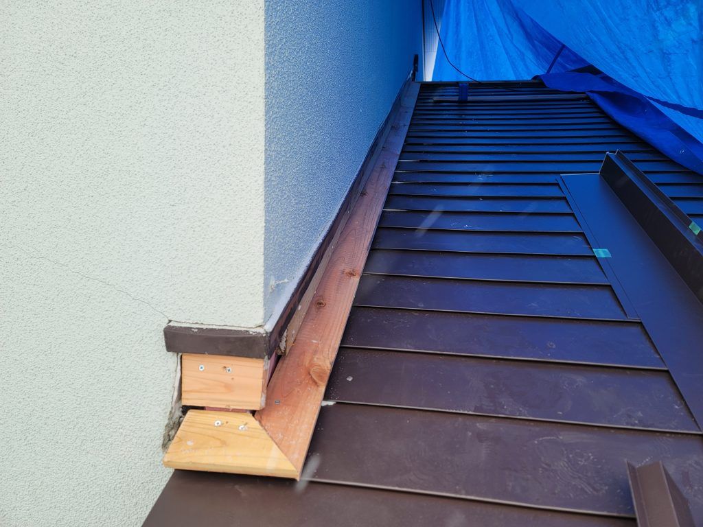 屋根が吹き終わったら、壁との取り合い部分を作業していきます。