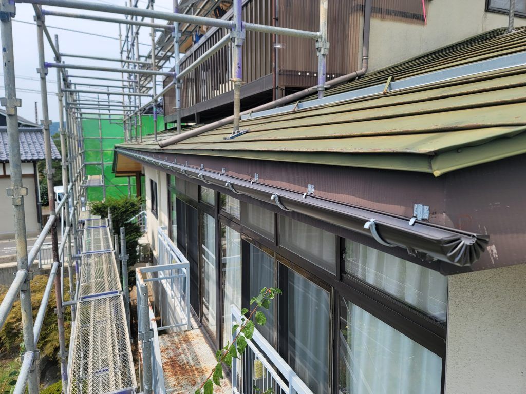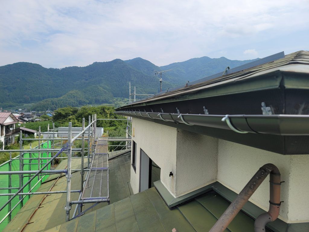 今回施工の全景写真です。雨樋の穴や温水パネルの細かい部分は見えませんが、雨樋のたるみは良く見るとわかるかもしれませんね。