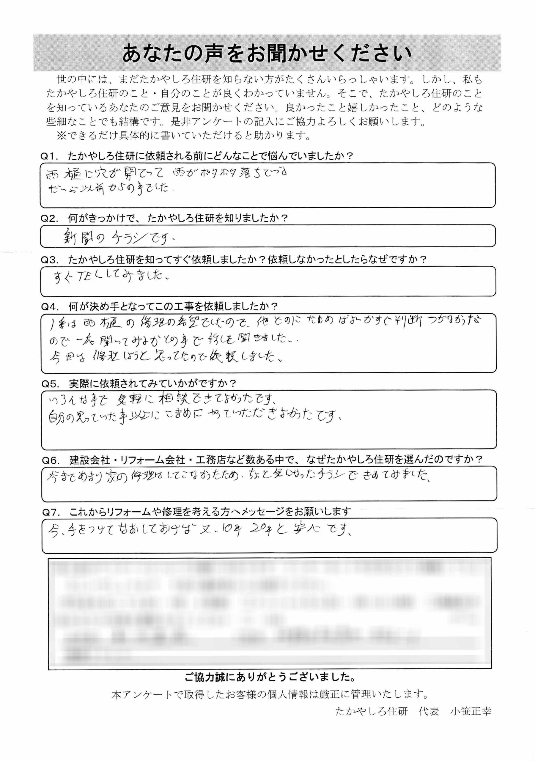 - たかやしろ住研に依頼される前にどんなことで悩んでいましたか?