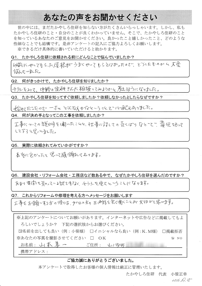 - 以前にやってもらった屋根がうまくやってもらえなかったので、 どうしたものかと大変悩んでいました。