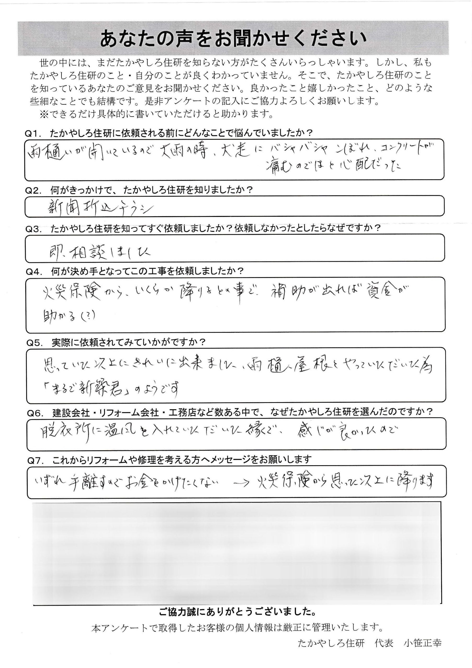 - 建設会社・リフォーム会社・工務店など数ある中で、 なぜたかやしろ住研を選んだのですか?