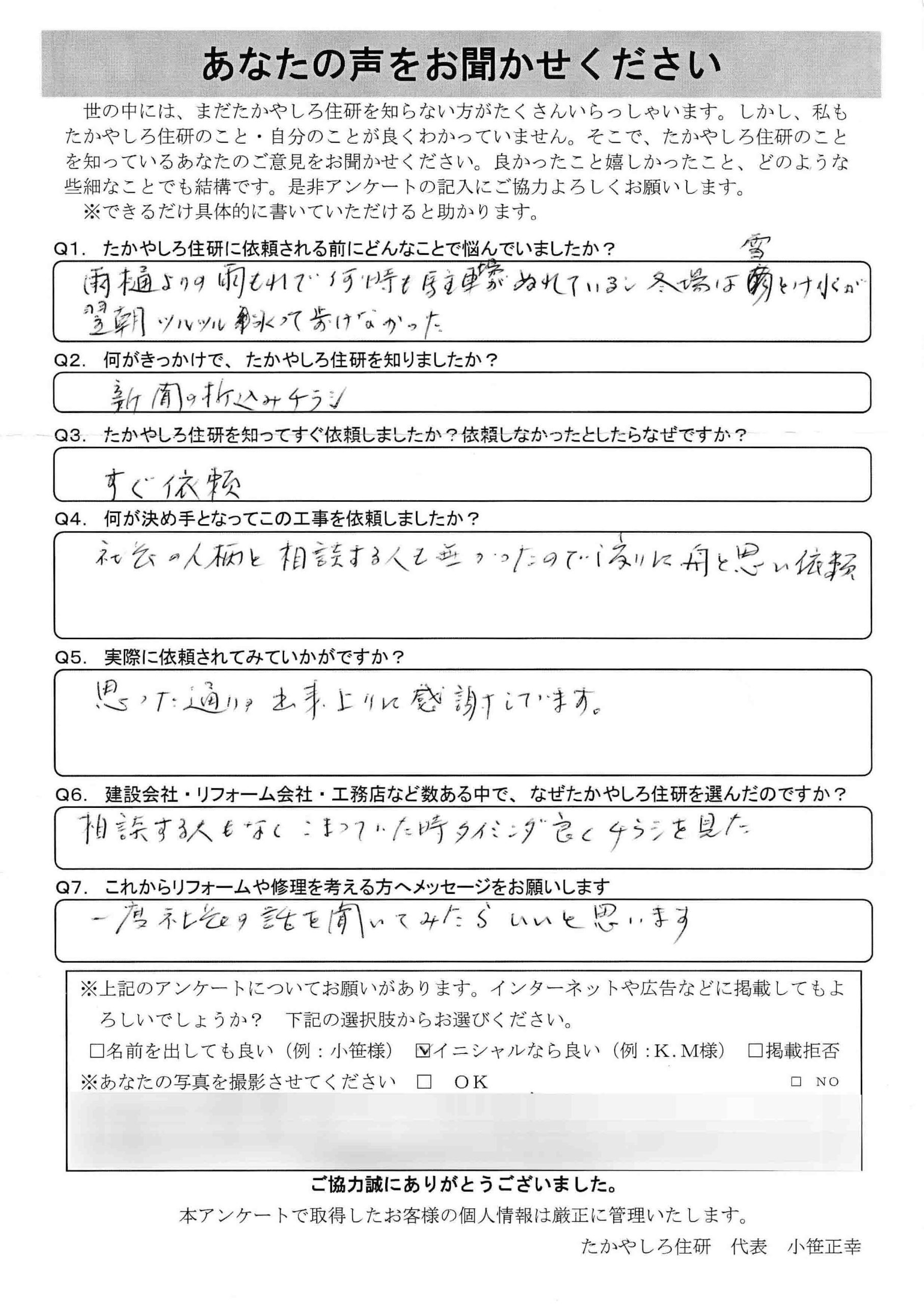 - たかやしろ住研に依頼される前にどんなことで悩んでいましたか?