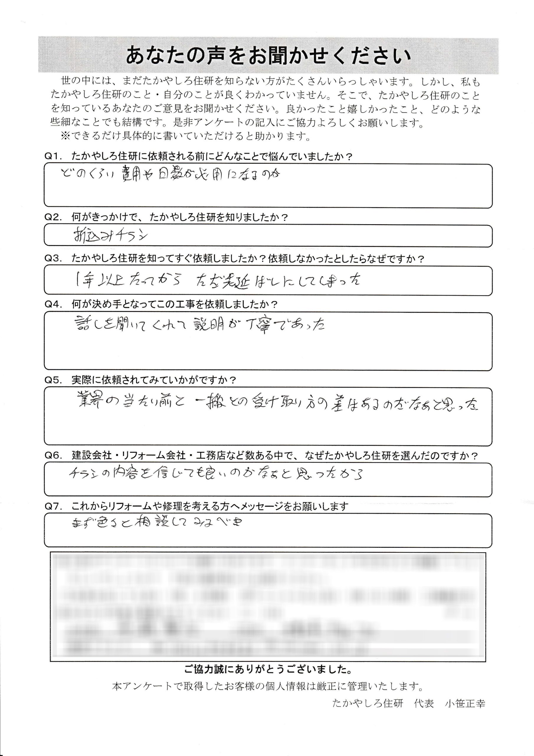 - たかやしろ住研に依頼される前にどんなことで悩んでいましたか?