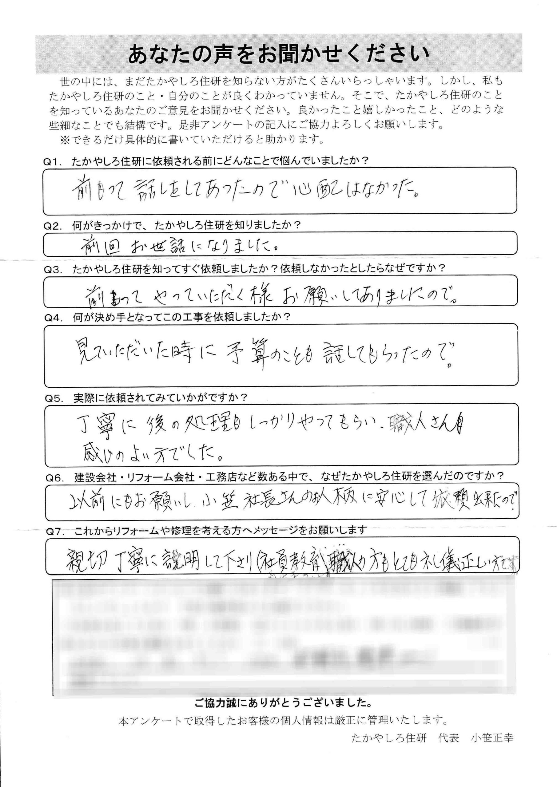 - 以前にもお願いし、小笹社長さんのお人柄に安心して依頼出来たので。