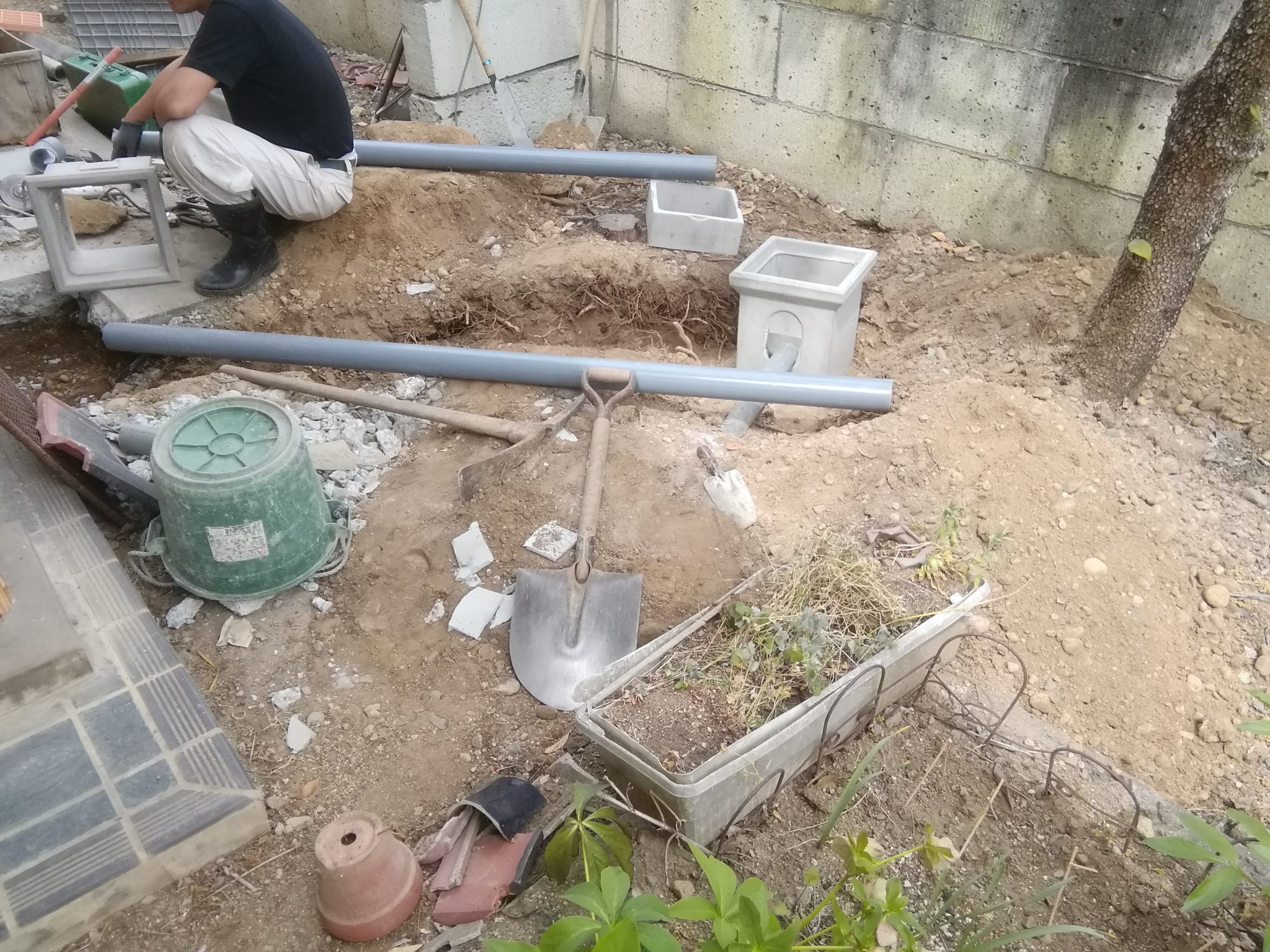 【中野市】雨水排水~埋まっている管が詰まってるみたいで雨水があふれる~