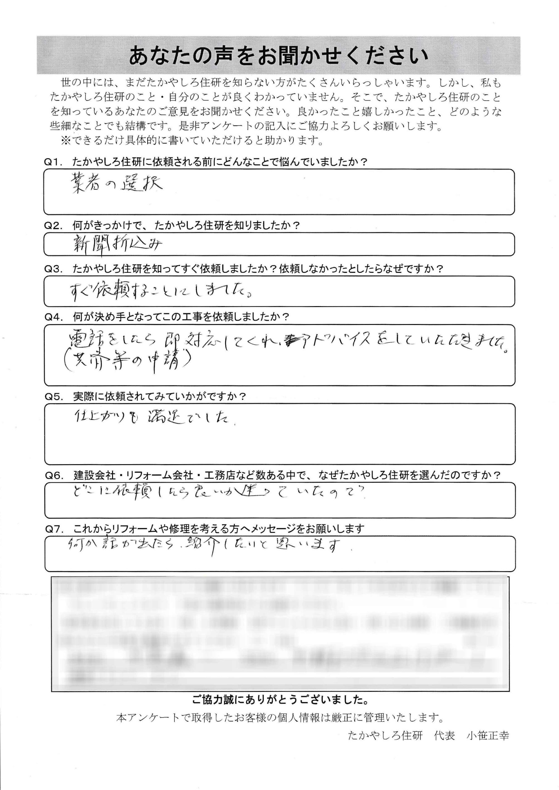 - 建設会社・リフォーム会社・工務店など数ある中で、 なぜたかやしろ住研を選んだのですか?