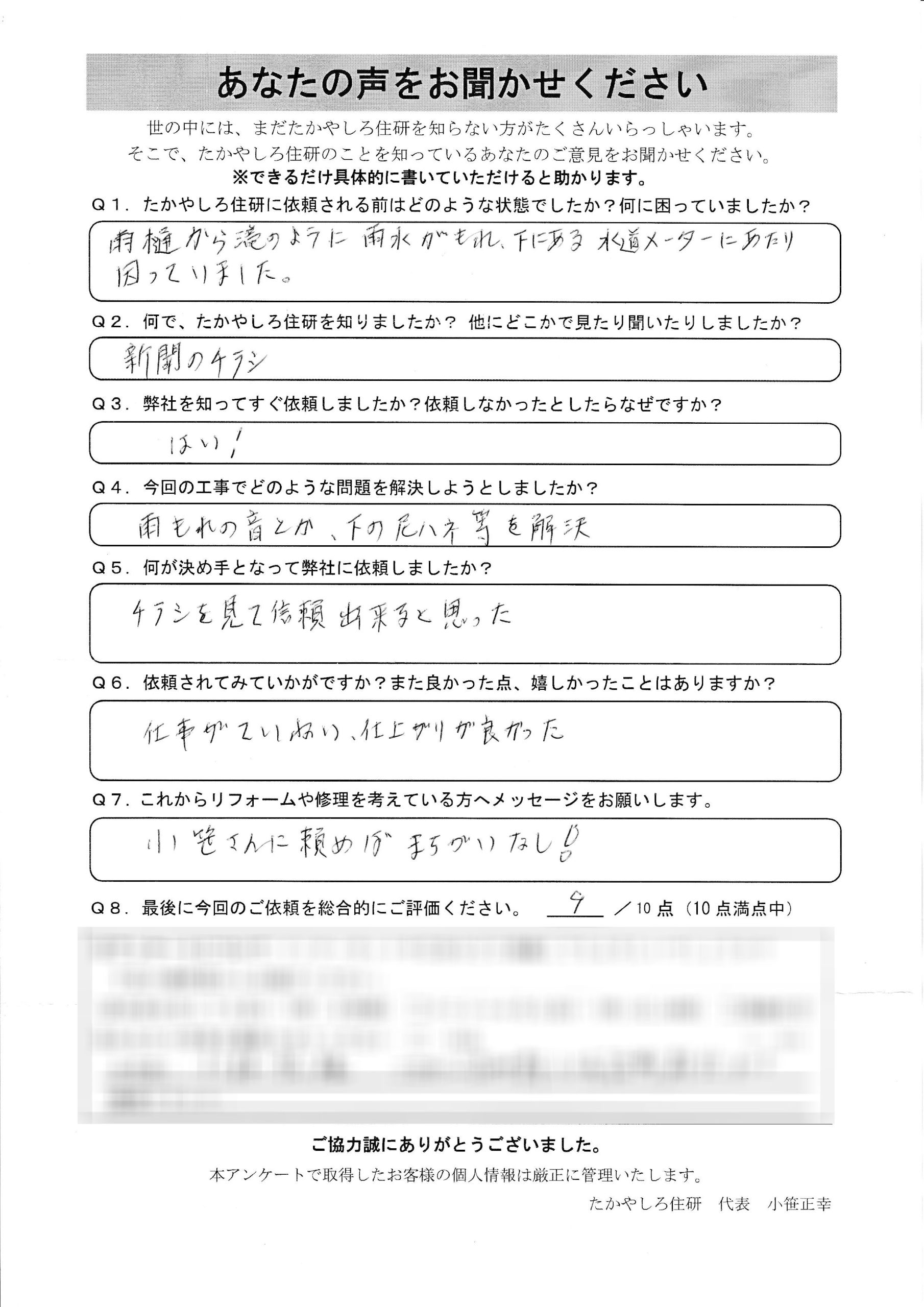 - 雨樋から滝のように雨水がもれ、下にある水道メーターにあたり 困っていました。