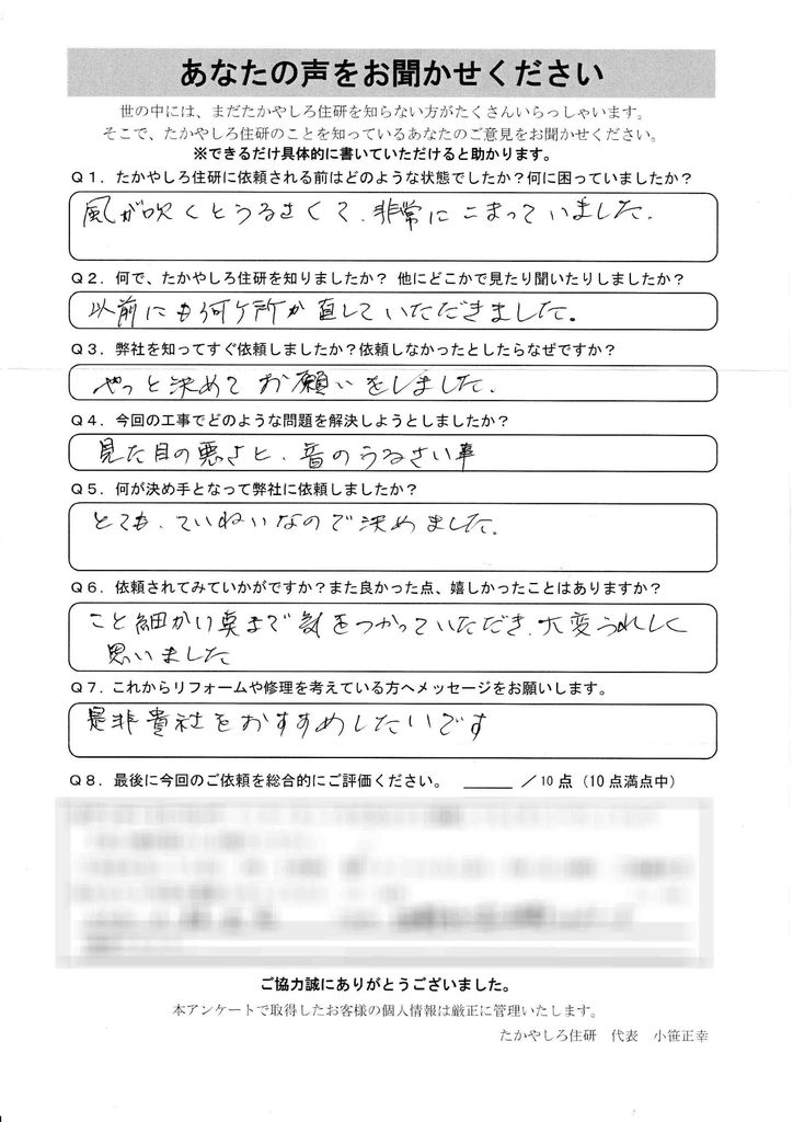 - 風が吹くとうるさくて、非常にこまっていました。