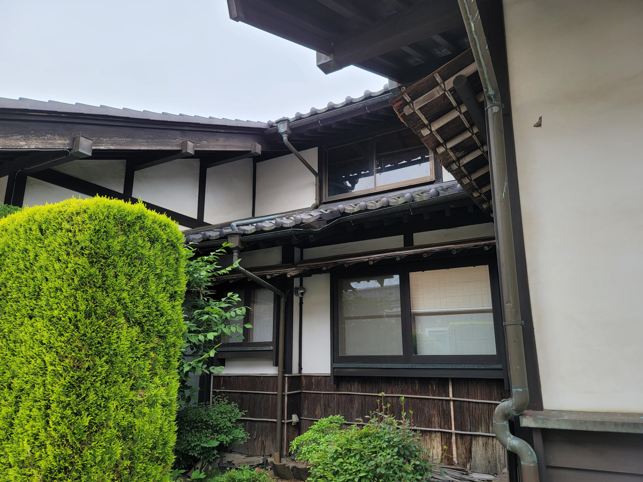 ~玄関脇の縦樋の途中から雨水が漏れている。そんな箇所があと2ヶ所あるので見て欲しい~