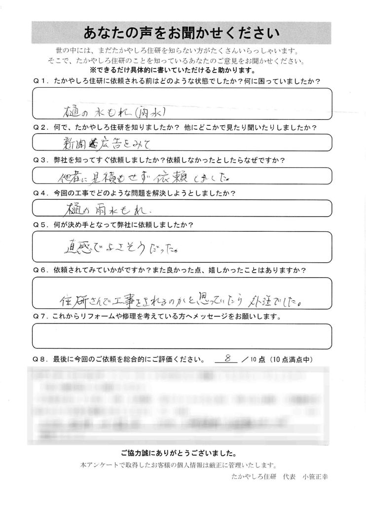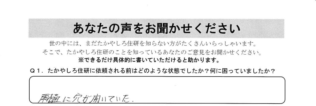 - たかやしろ住研に依頼される前はどのような状態でしたか? 何に困っていましたか?