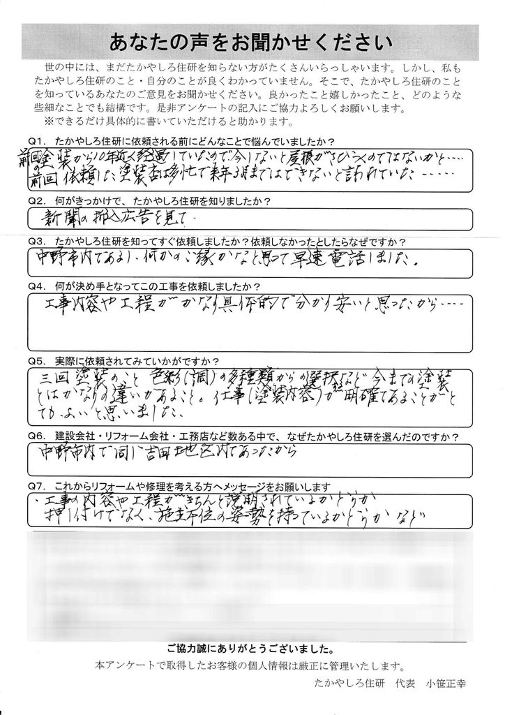 - 前回塗装から10年近く経過していたので、今しないと屋根が さび付くのではないかと…前回依頼した塗装店は多忙で来年 3月までは出来ないと言われていた…